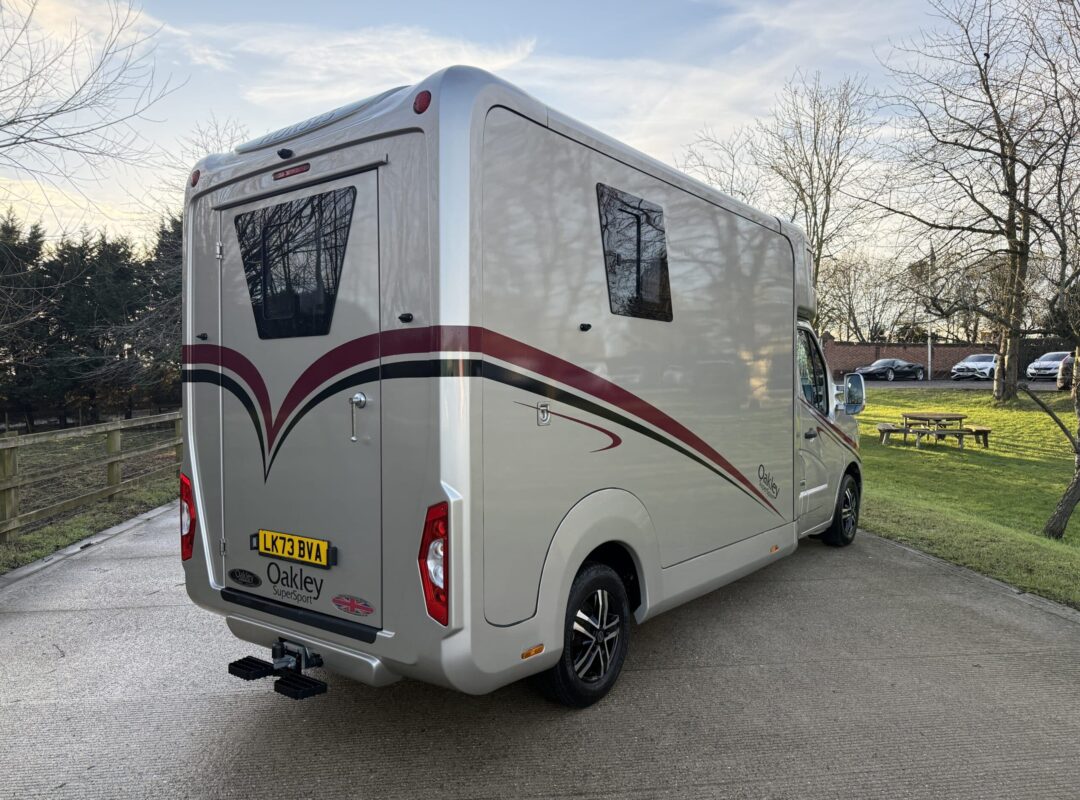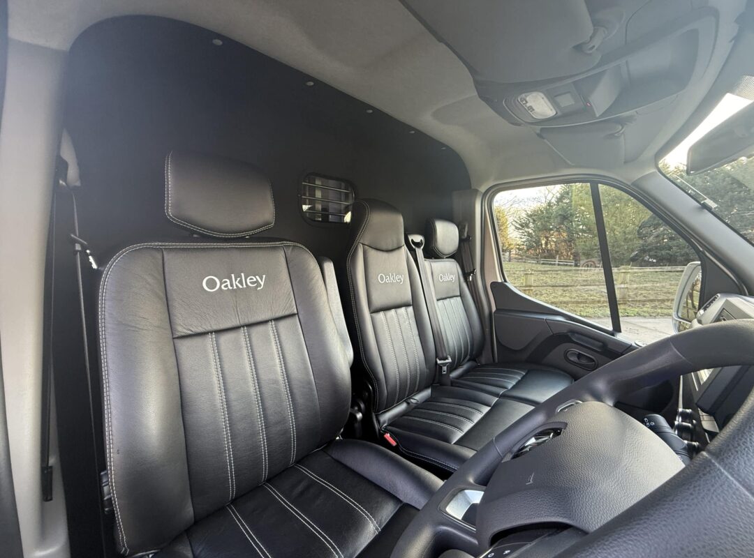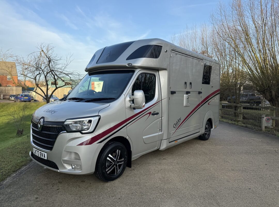 2023 Oakley Supersport 2 Stall Horsebox | 3 Seater Cab | Rearward Facing Stalls | Stallion Stall Partitions (Non Chest Bar) | Wide Rear Exit Door | Rear Tack Area Storage | Storage Bench Seat | Fully Adjustable Sliding Partition | Electric Fan | Roof Vents | Horse and Reversing Cameras | External Tie Up Rings | Mounted Upon 2023 (73) Renault Master 165hp | 6 Speed Manual Gearbox | Alloy Wheels | Infotainment Media System | 2,900 Miles | 3,500kg GVW. | Finished in Metallic Luxor and Burgandy Stripes |