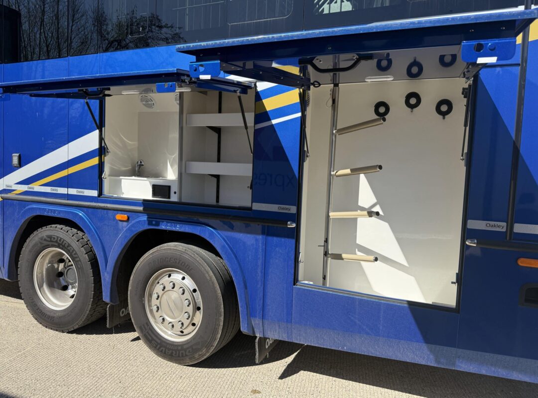 2025 Oakley Supremacy 5 Stall Horsebox | Quadruple Slide Out and Pop Up | Luxury Open Plan Living Area | Sixth Berth Accommodation | Satin Walnut Wood Panels and Furniture | Oakley Pearl Units | Cashmere Leather Upholstery | Extensive Kitchen Facilities | Gas Hob and Oven Kitchen Appliances | Dishwasher | Heating System | Oakley WiFi System | TV | Satellite System | Sound System | Keypad Entry | Large Slide Out Shower Room | Slide Out Wardrobe | Pop Up to Hallway Berth with Access from Living and Horse | Diesel Fuelled Generator | Starlight Feature | Wine Fridge and Wine Rack | Heating System | Air Conditioning Unit | Oakley Touch Screen Control Panel | Linear LED Lighting | Panoramic Skylight | Electric Awning | Electric Start Diesel Fuelled Generator | Additional Passenger Swivel Chair to Cab | Four Adjustable Padded Partitions | Multi-Tracking Flooring | Full Width Underfloor Storage | Separate Saddle and Bridle Lockers | Rear Grooms Door | External Fridge or Freezer | Mounted Upon 2025 Volvo FH 500bhp | Tilt Cab | I-Shift Automatic Gearbox | Front and Rear Air Suspension | 3,000 Miles | Tilt Cab Facility | Kelsa Mid and Lo-Bar | Oakley Technology Pack | Horse and Reversing Cameras | Brigade 360 System | 26,000kg GVW. | Finished in High Gloss Blue.