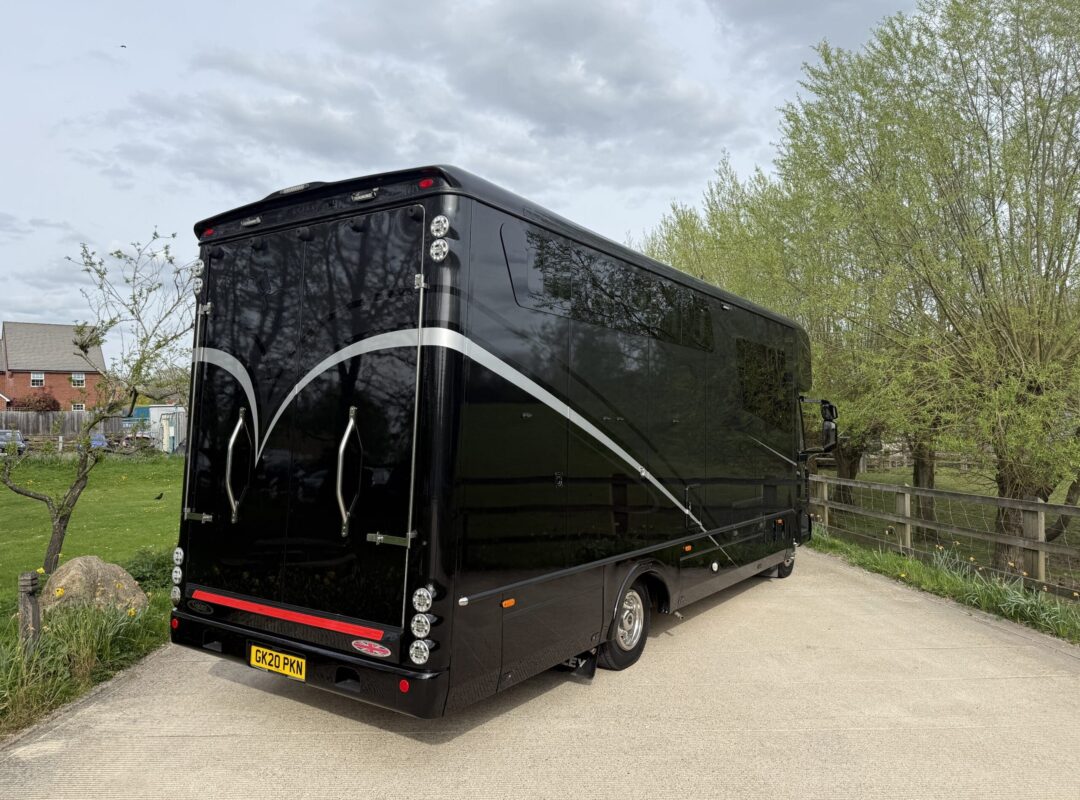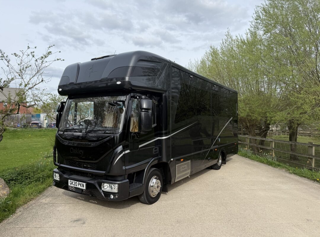 2022 Oakley Supreme 2/3 Stall Horsebox | Luxury Open Plan Living Accommodation | Four Berth Sleeping Accommodation | Satin Walnut Wood Furniture | Oakley Pearl Upper Units | Ecru Leather with Distressed Piping | Kitchen Facilities | Heating System | TV and DVD Player | Sound Bar | Touch Panel Control | Full Shower Area | Electric Start Diesel Fuelled Generator | Two Padded Divisions | Underfloor Storage | 2020 Iveco ML75E21 | Semi-Automatic Gearbox | Oakley Technology Media System | Horse and Reversing Cameras | Horsebox Only Mileage | 23,750 Miles | 7,500kg GVW. | Finished in Metallic Black Paintwork |