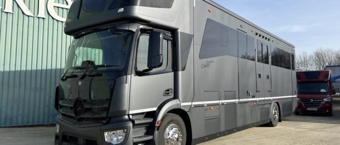 2024 Oakley Supreme 7 Stall Horsebox | Luxury Slide Out Open Plan Living Accommodation | Six Berth Accommodation | L Shaped Seating Area | Ceramic Wall Tiles with Bespoke Blue Kitchen Furniture | Horizon Grey Leather Seating | Kitchen Facilities | Hallway Berth | Heating System | Air Conditioning | TV | Full Shower Area | Diesel Fuelled Generator | Six Adjustable Padded Partitions (Stallion Headboards) | Side and Rear Ramp | Rear Grooms Door | Keypad Entry | Mounted upon 2024 Mercedes Actros | Semi Automatic Gearbox | Rear Air Suspension | Mercedes Satellite Navigation and Radio System | Horse and Reversing Cameras | Horsebox Only Mileage – 8,000 Miles (Vehicle still in use) | 18,000kg GVW. | Finished in Matte Dark Grey